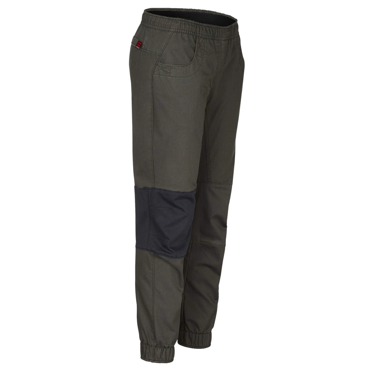 Durch den elastischen Bund sitzt die Hose sehr bequem unter dem Klettergurt. Dank des innen liegenden Schnürzugs kannst du die Weite des Hosenbunds passgenau einstellen. Die elastischen Beinabschlüsse ermöglichen eine freie Sicht auf deine Füße und verhindern, dass dir die Hose bei deinen Tritten in den Weg kommt.