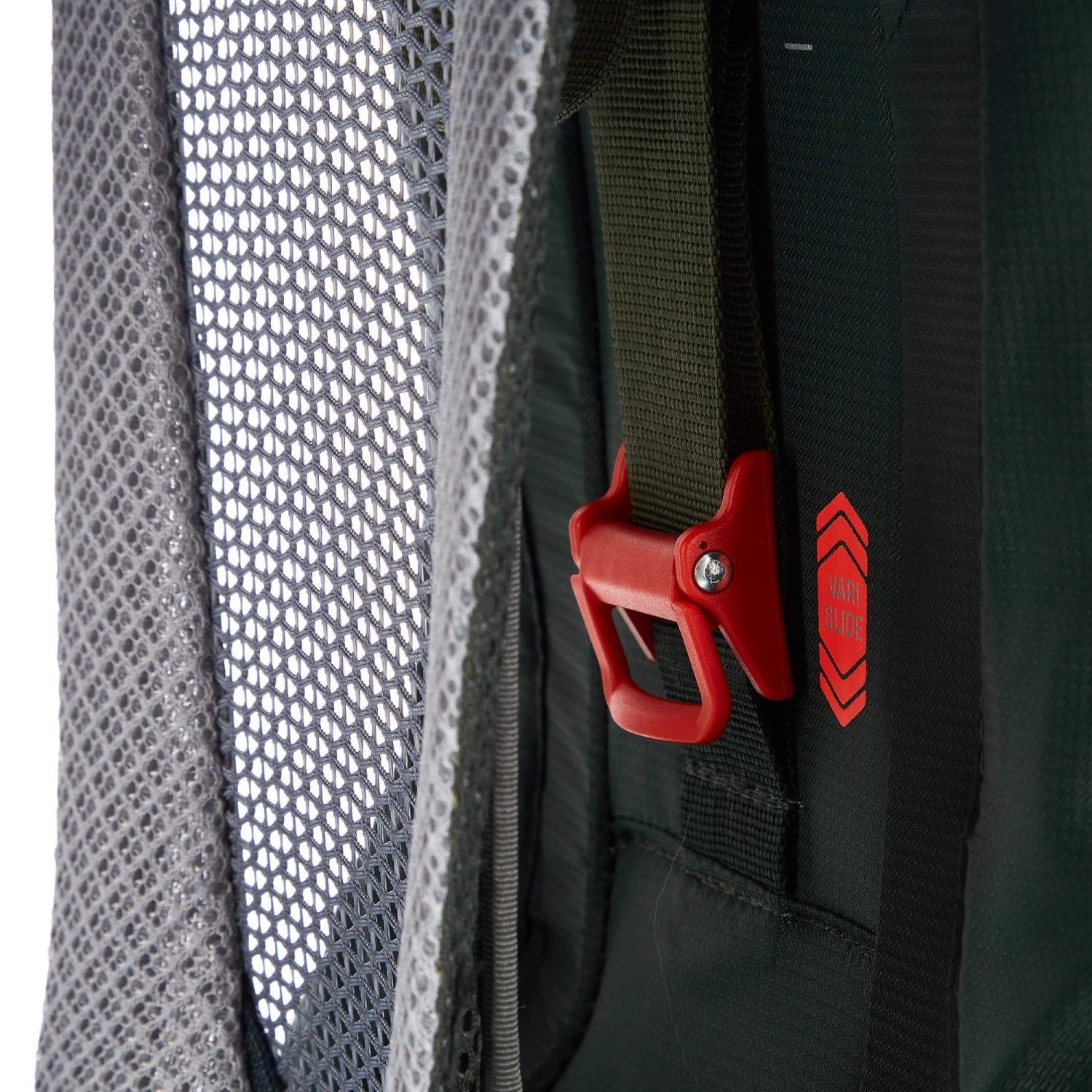 Die Rückenlänge lässt sich mit Hilfe des kinderleicht bedienbaren VariSlide-Systems individuell anpassen. Hierfür wird einfach nur die Klemme hinter dem Netzrücken gelöst und die Länge stufenlos eingestellt. Der Hüftgurt und die Schultergurte sind flexibel aufgehängt, wodurch sie sich an deine Statur anpassen und deinen Bewegungen folgen.