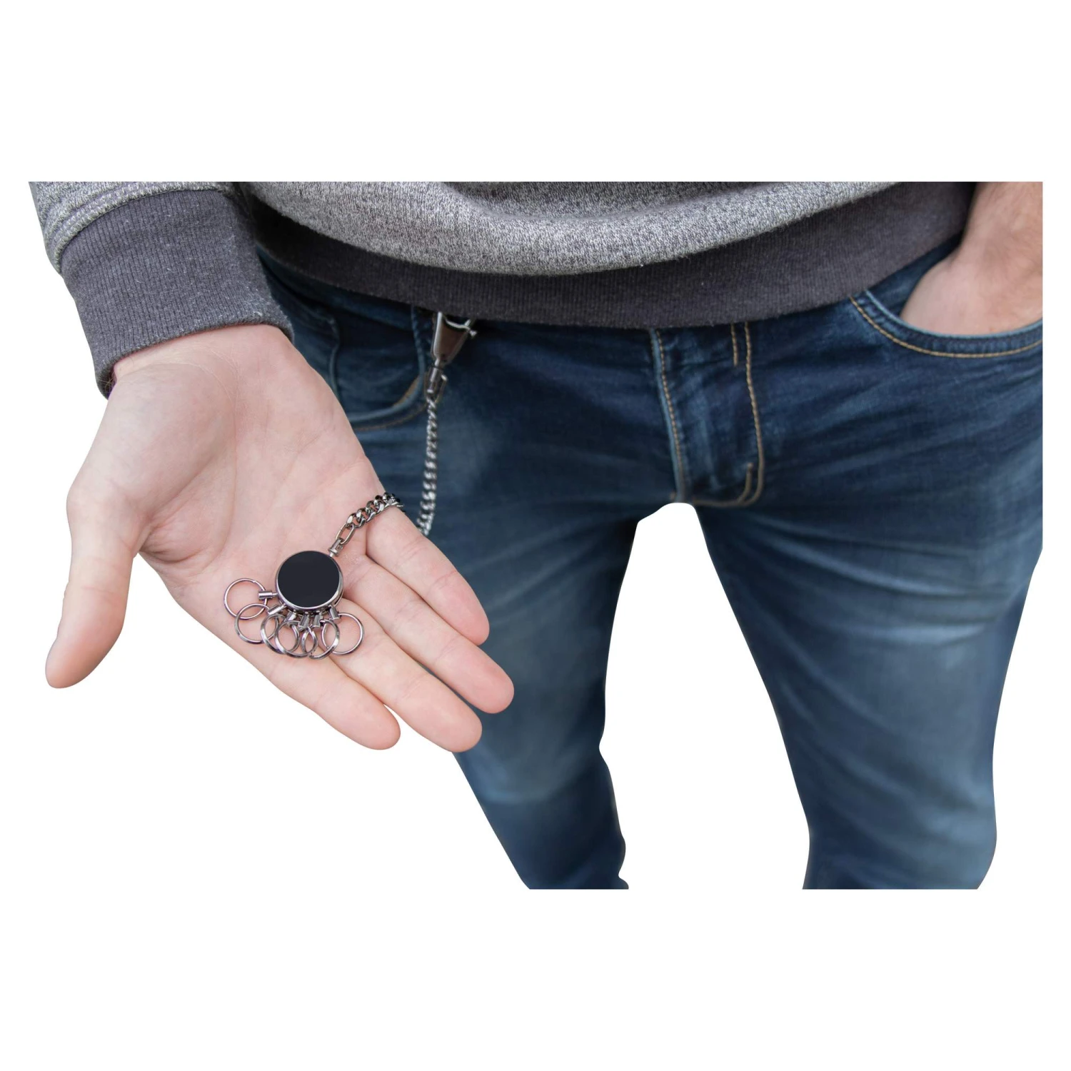 Hochwertiger Schlüssel-Organizer, der es dir sekundenschnell erlaubt, einzelne Schlüssel aus dem Ring zu entnehmen und einzusetzen. In dieser Version mit Gürtelkette.