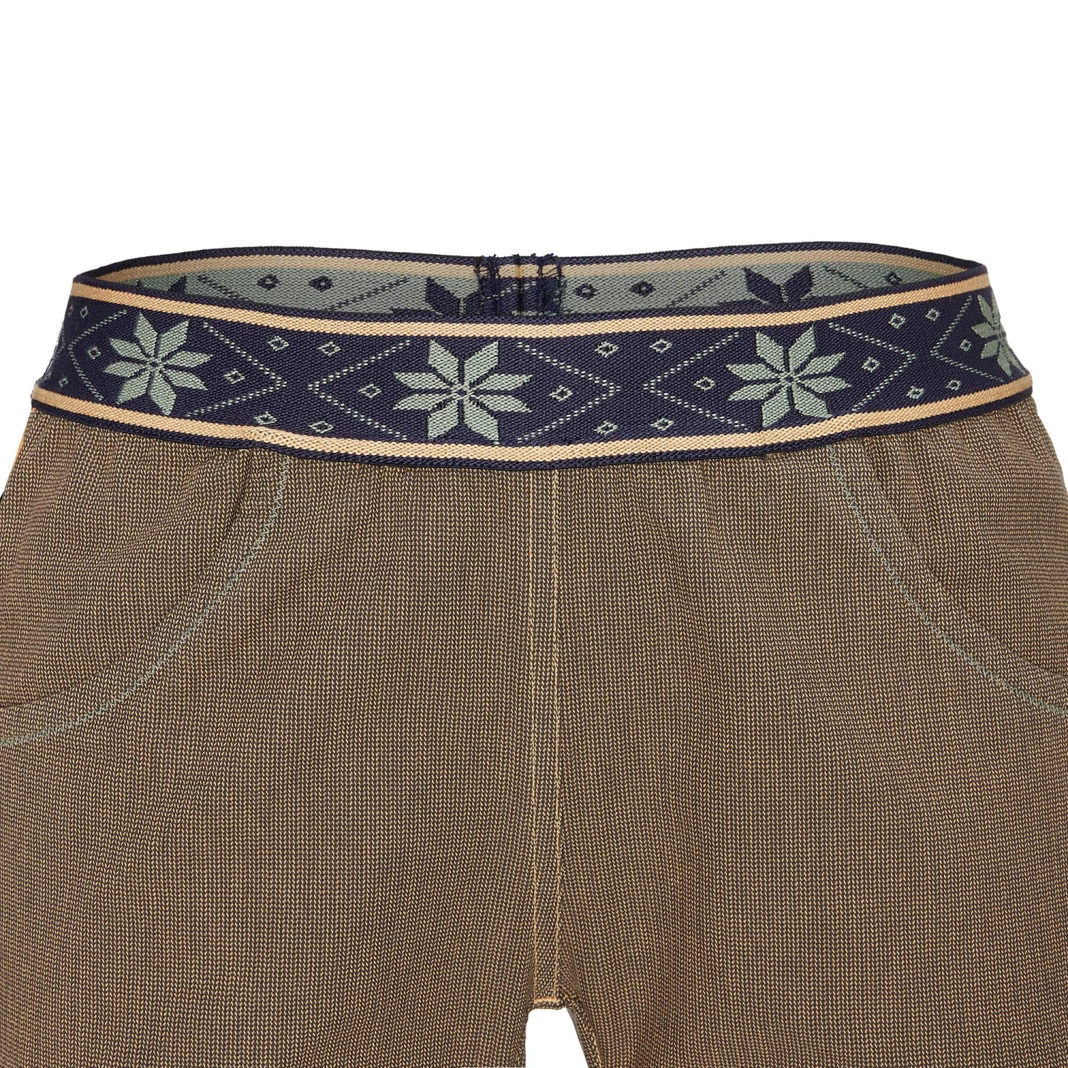 Die Mitake Pants II ist aus einem weichen Mix aus Biobaumwolle und recycelter Kunstfaser gefertigt. Durch den flachen, elastischen Gummibund sitzt sie auch unter deinem Klettergurt super bequem.